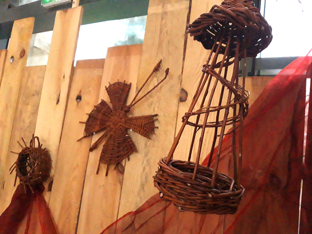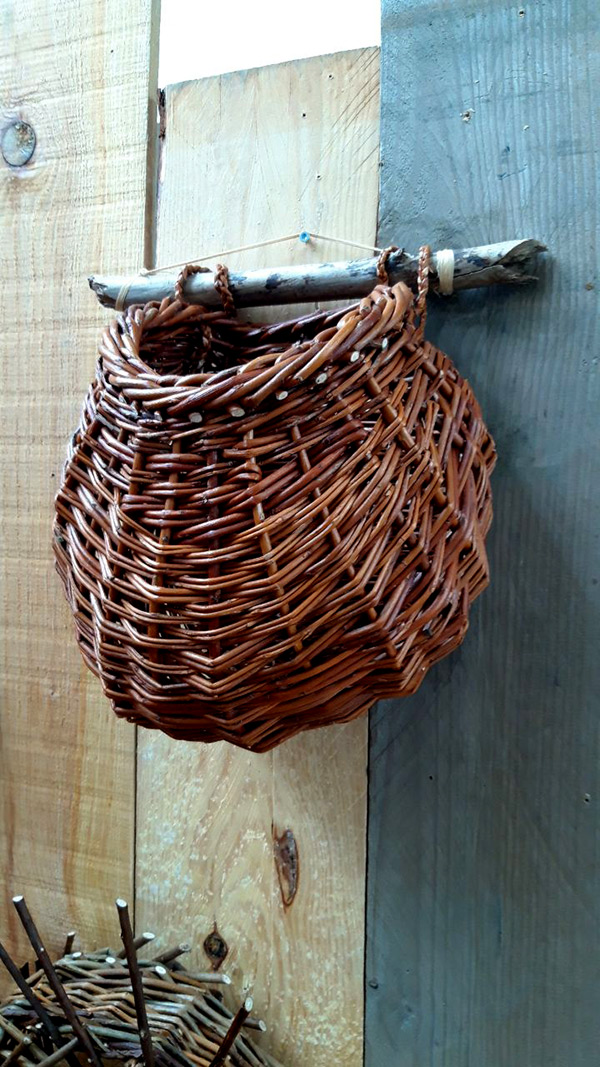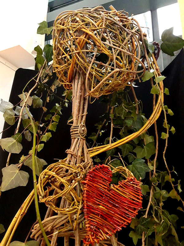 Elle apprécie particulièrement jouer avec les couleurs naturelles des écorces et des fibres, mais utilise parfois aussi de l’osier blanc.