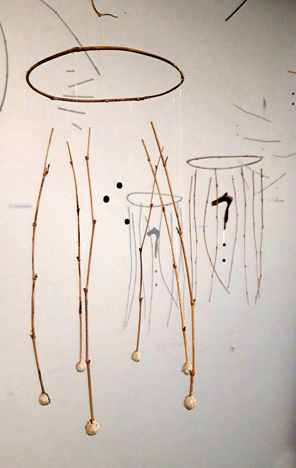 Elli Drouilleau, installe ses mobiles racontant une