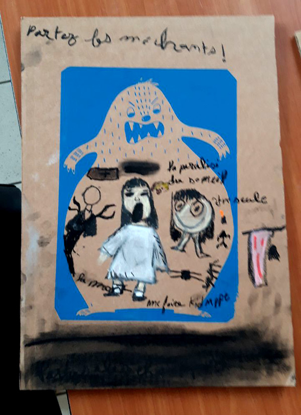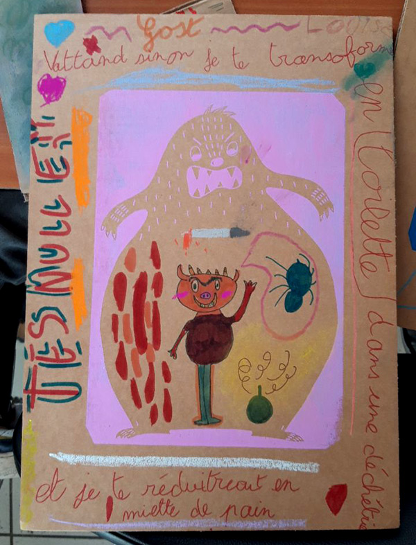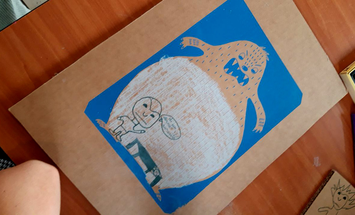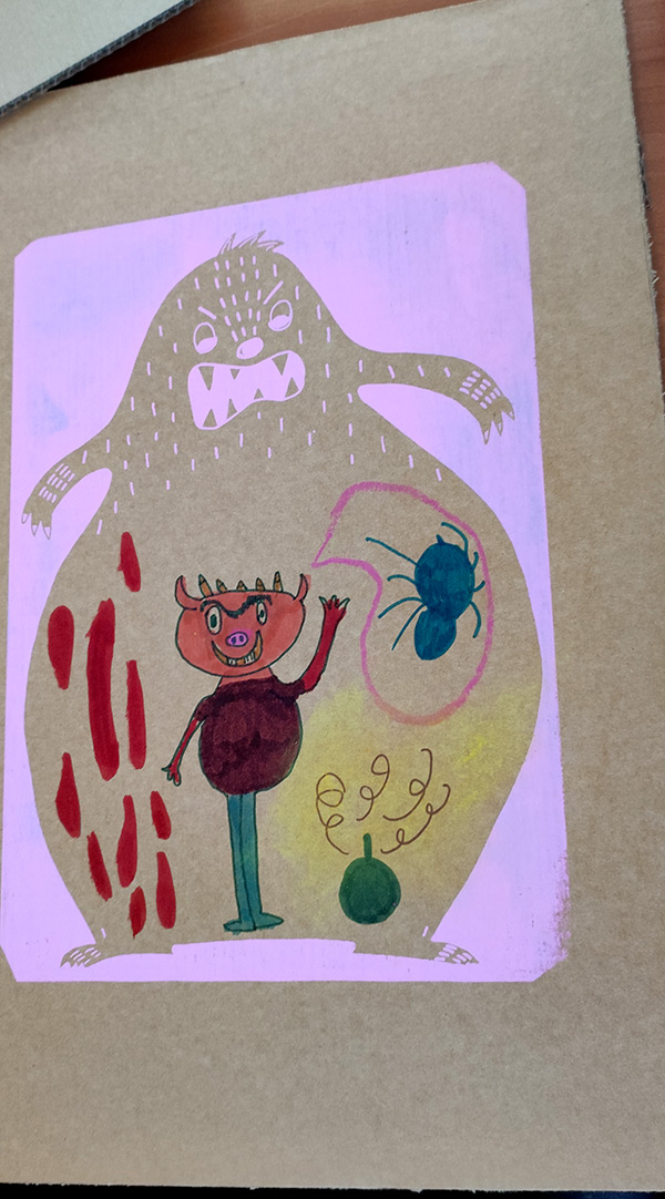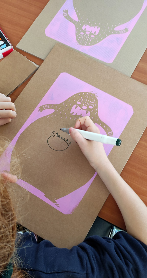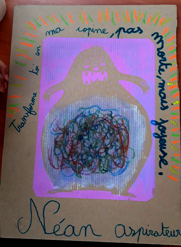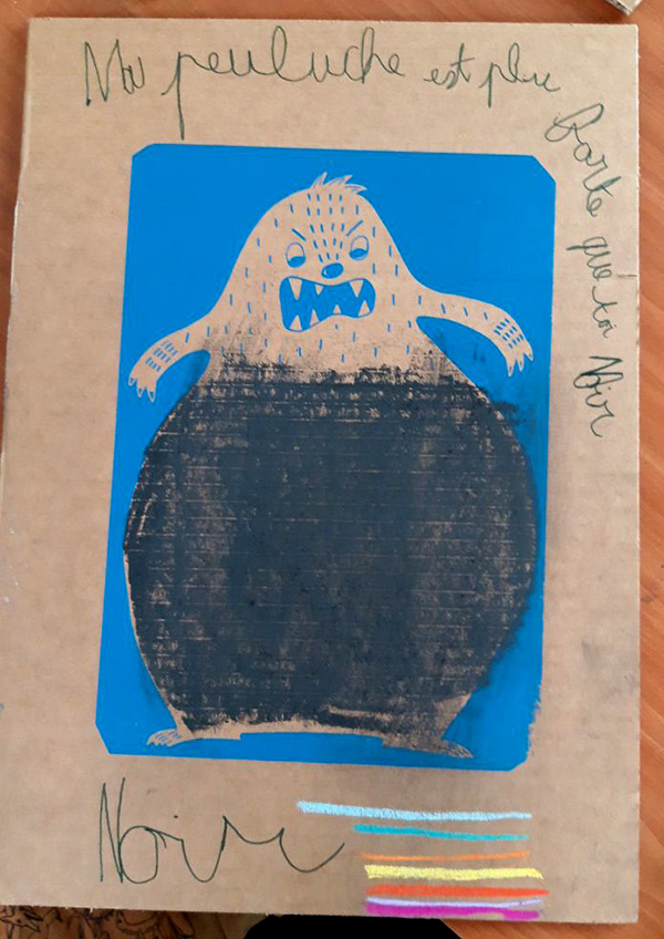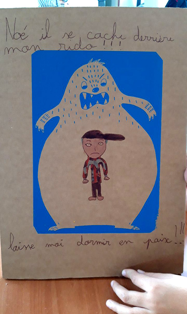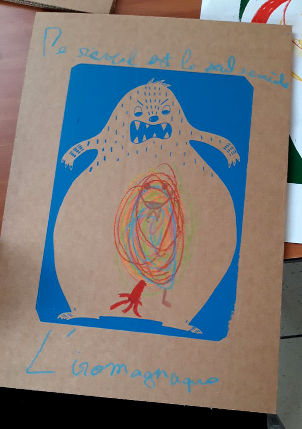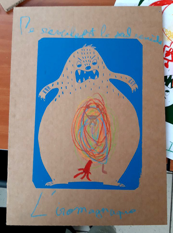 Dessiner ses peurs et imprimer un monstre en sérigraphie qui les avale.